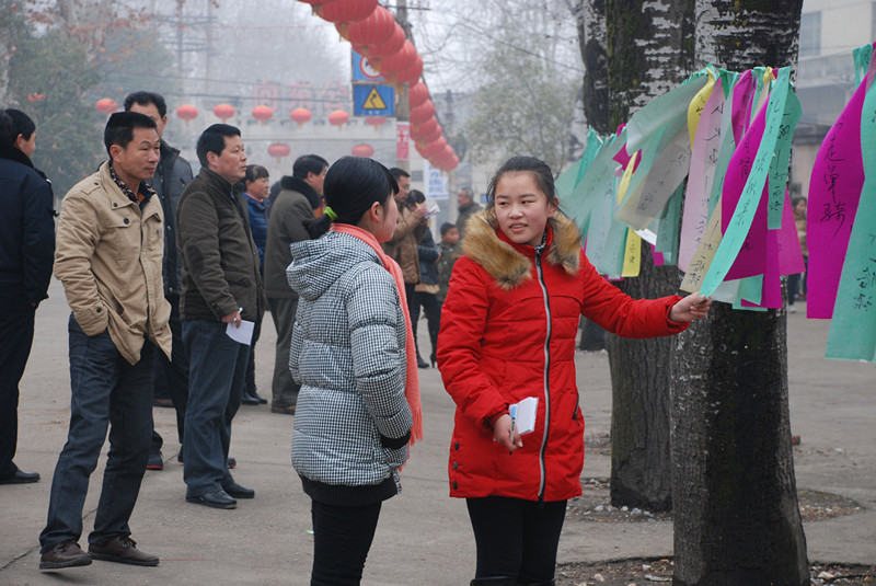 大年初三,廠區(qū)幼兒園至露天劇場的道路兩旁也掛滿了謎語,當(dāng)日天氣雖然寒風(fēng)凜冽,但大家依舊熱情高漲,爭先恐后,踴躍競猜,表現(xiàn)出了極大的熱情和濃厚的興趣,他們冥思苦想,互相解釋謎面,猜測答案,熱鬧紛繁。各種猜謎手段也運(yùn)用的淋漓盡致,有拿著草稿紙分析答案的,還有現(xiàn)場用手機(jī)上網(wǎng)找答案的,猜出的各種謎底充滿趣味,現(xiàn)場也是笑聲不斷。不一會,兌獎處已經(jīng)排起了長龍。