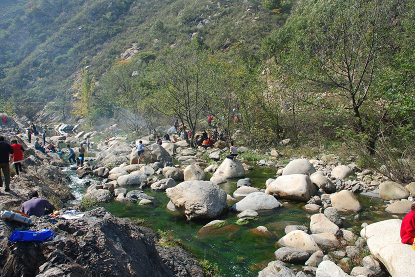 當天晴空萬里,艷陽高照,是戶外活動的好天氣。出發(fā)之前,工會副主席王友志跟大家交代了注意事項,隊伍就浩浩蕩蕩出發(fā)了。一路微風吹拂,彩旗飄楊。“我運動我快樂”的旗幟在陽光照射下顯得格外醒目。隊伍象一條長龍盤繞在鄉(xiāng)間小道上,很是壯觀,為路人增添了一道亮麗的風景線。一路上許許多多的自然景象讓大家看的眼花繚亂,目不暇接。大家邊走邊欣賞,邊走邊聊,留下了一路的歡聲笑語。經(jīng)過1個多小時的步行,九點多鐘大隊人馬陸續(xù)到達目的地,各單位拿著準備好的食物、炊具到溝底河灘找位置安營扎寨。
