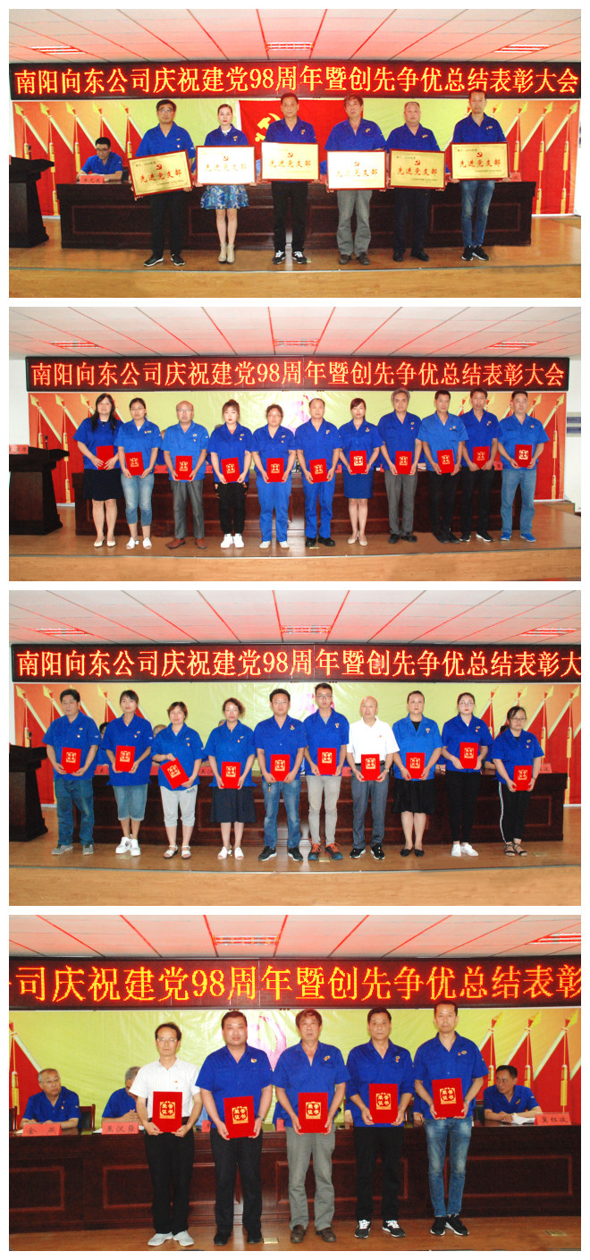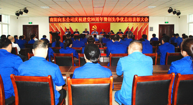 ? ? 6月28日,南陽(yáng)向東公司在向東工業(yè)園隆重召開(kāi)慶祝建黨98周年暨創(chuàng)先爭(zhēng)優(yōu)總結(jié)表彰大會(huì)。公司領(lǐng)導(dǎo)喬新濤、姜華、王漢臣、郭方、金燕、丁玨、李允東、冀紅波以及來(lái)自公司各單位70余名黨員、入黨積極分子參加會(huì)議。會(huì)議由黨委委員、紀(jì)委書(shū)記王漢臣主持。